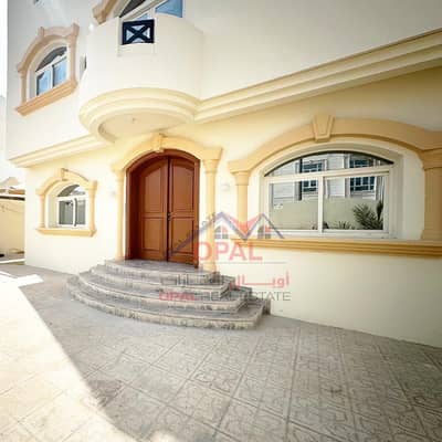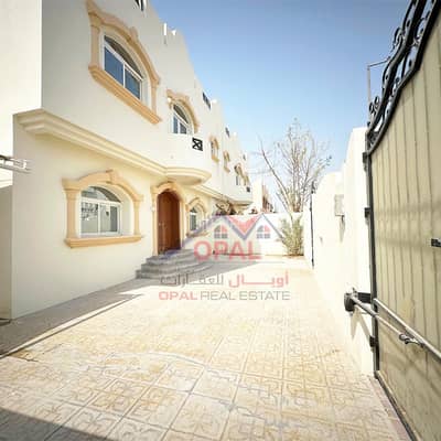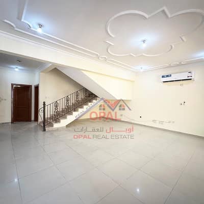 For rent: a villa in Ain Khalid consisting of: Ground floor: a hall, a majlis, a bathroom, a reception area, and a kitchen. First floor: two master bedrooms, two bedrooms with a shared bathroom. Penthouse: a room, a bathroom, and a spacious front yard. Price: 11,000 Riyals.